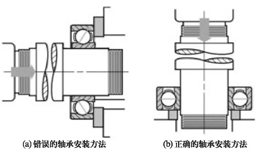軸承安裝裝反了,不僅軸承工作不正常,且各配合面會遭到嚴重磨損。由于軸圈與座圈和區別不很明顯,裝配中應格外小心,不能裝反。